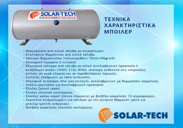 Ο ηλιακός θερμοσίφωνας SOLAR TECH είναι αρίστης ποιότητας. Σημαντική είναι και η ποιότητα του δοχείου αποθήκευσης τόσο για την μακροζωία του συστήματος όσο και για την ελαχιστοποίηση των θερμικών απωλειών.